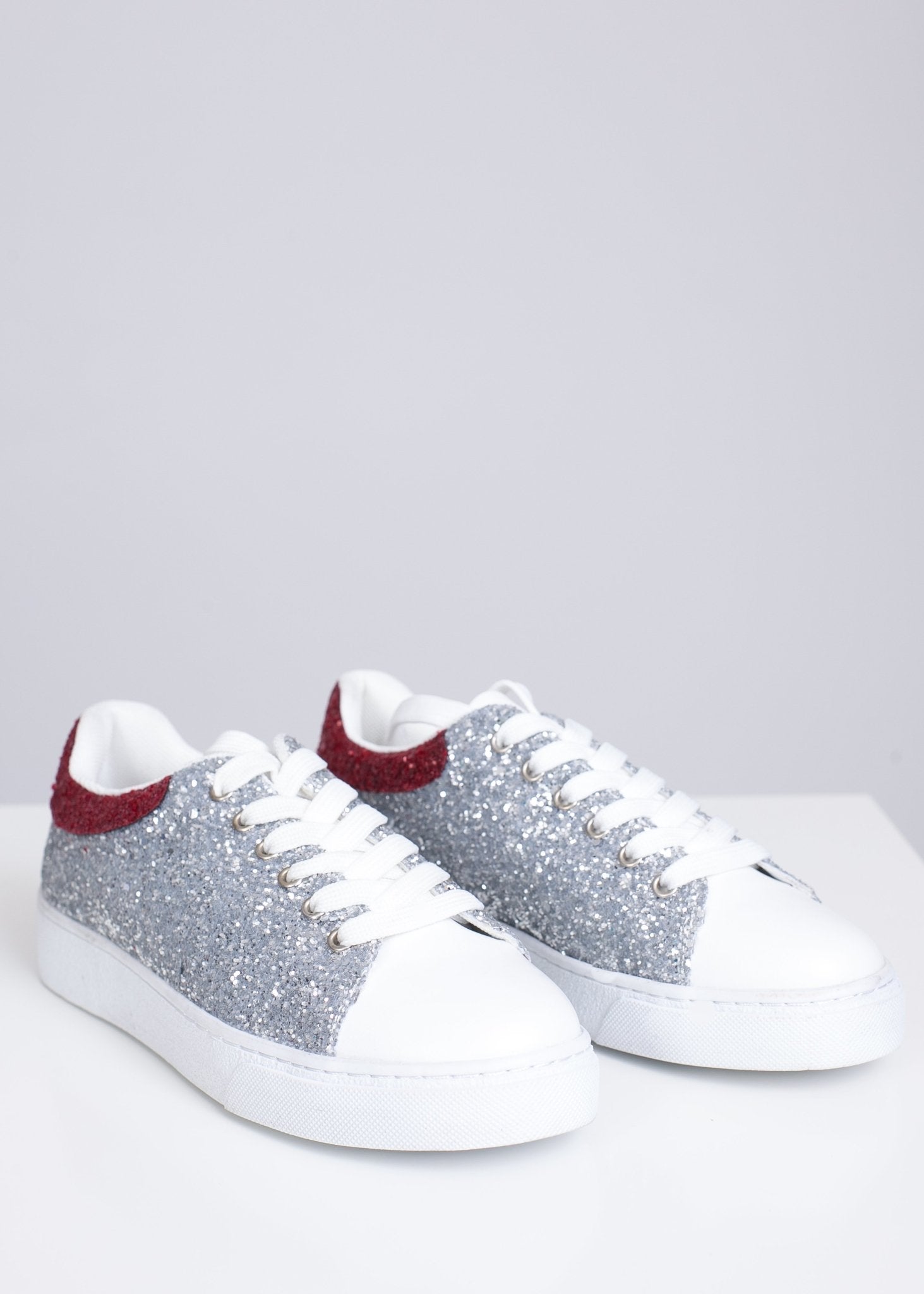 These fab sparkly trainers are ideal for finishing up with any outfit, the pop of red at the back makes then stand out from the crowd.